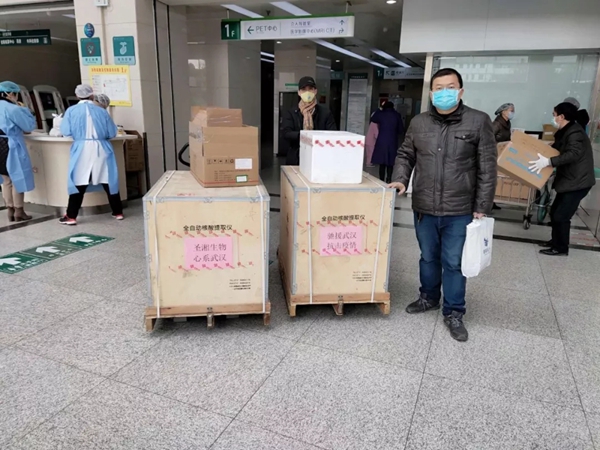 金年会jinnianhui生物捐赠的第一批医疗设备、试剂以及配套耗材,顺利抵达武汉。与当地合作商一起,装运货物入库。